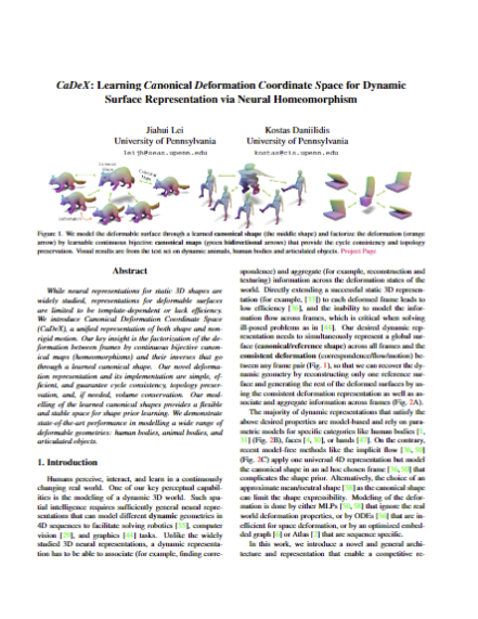 title={CaDeX: Learning Canonical Deformation Coordinate Space for Dynamic Surface Representation via Neural Homeomorphism},